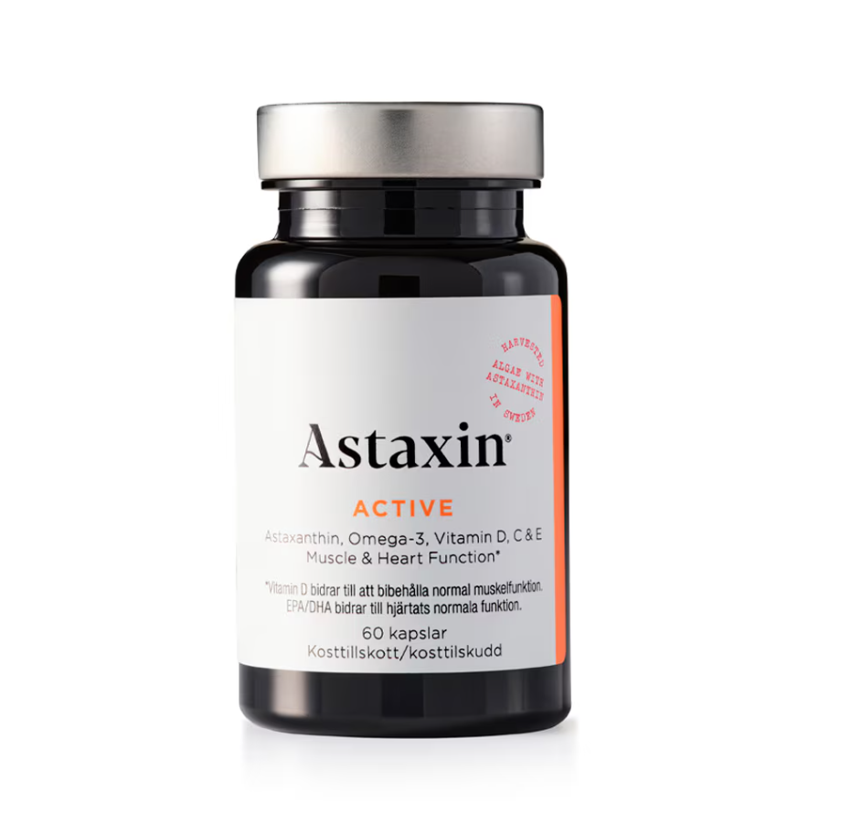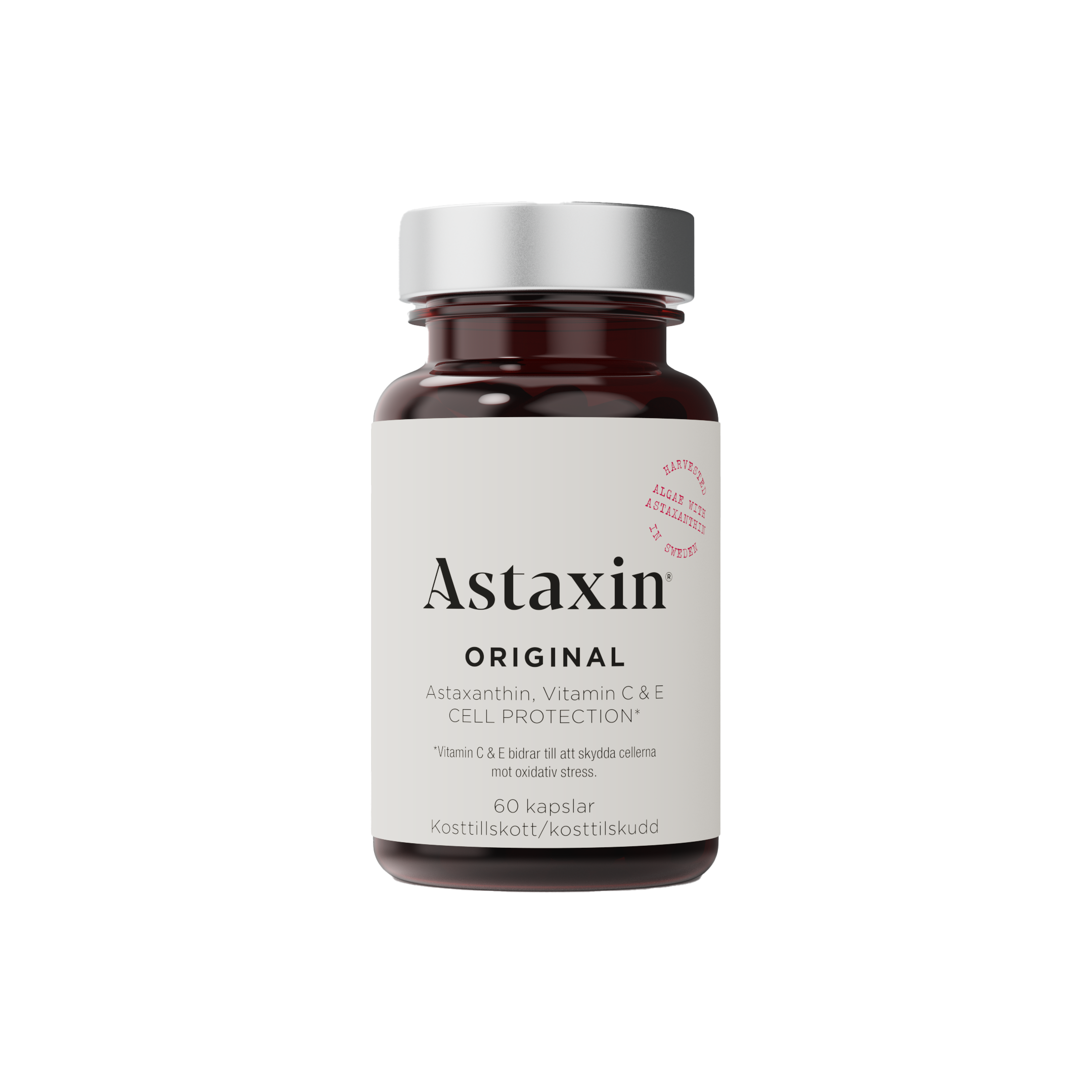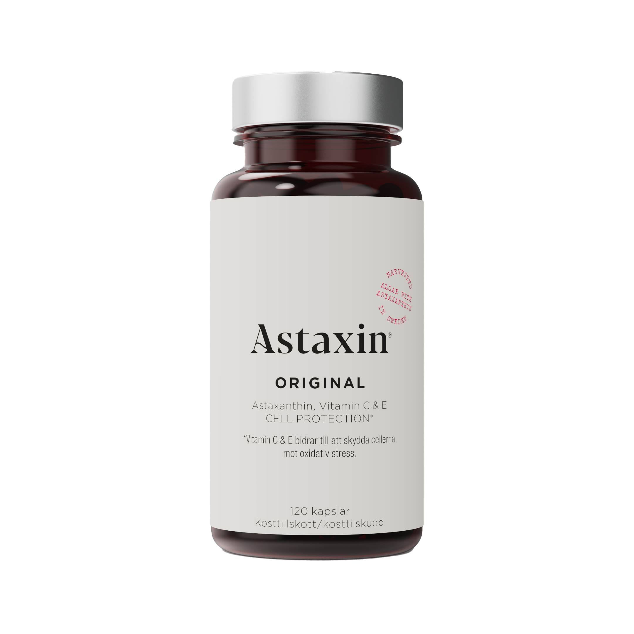 Astaxin® är ett svenskt kosttillskott som innehåller det algbaserade ämnet astaxantin samt antioxidanterna vitamin C och E. Dessa komponenter bidrar till att skydda kroppens celler mot oxidativ stress. Vitamin C stödjer dessutom immunsystemets normala funktion och hjälper till att minska trötthet och utmattning.