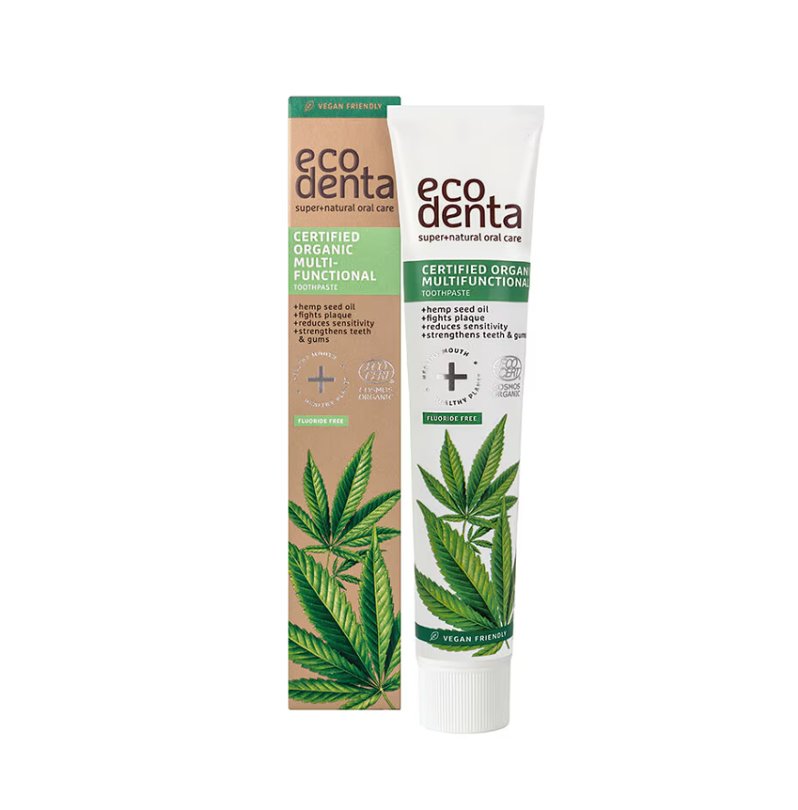 Med noggrant utvalda ingredienser som ekologiska växtextrakt, kalcium, kol och naturliga mineraler bidrar Eco Denta till att förebygga karies, stärka tandemaljen och motverka missfärgningar på ett hållbart sätt. Många av produkterna är dessutom fria från fluor, SLS och parabener – perfekt för dig som söker ett mer naturligt alternativ.