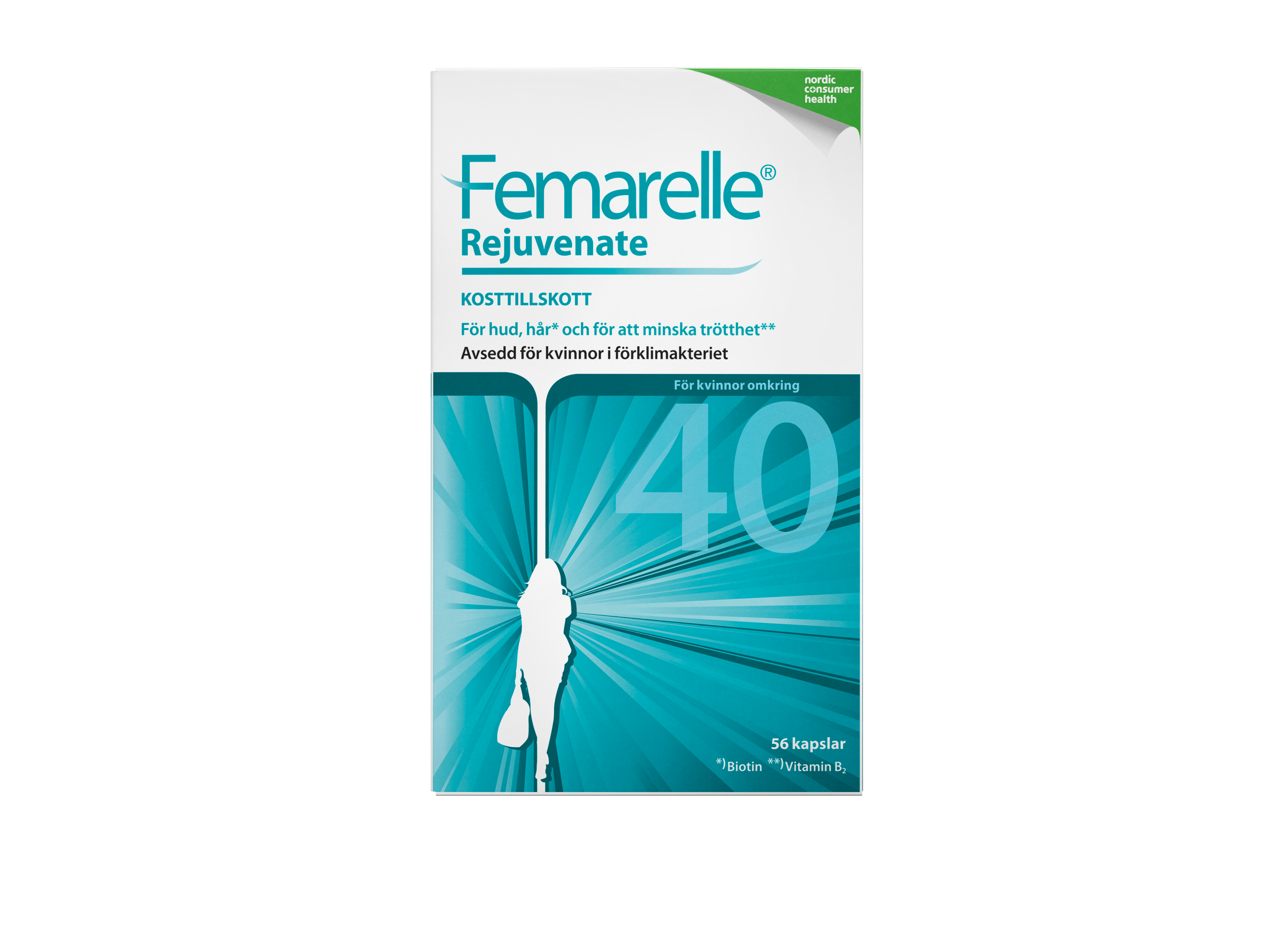 Femarelle är kosttillskottet för kvinnor på väg in eller som befinner sig i klimakteriet, alternativt som redan har gått igenom klimakteriet. Femarelle kommer i tre olika versioner: Rejuvenate, Recharge och Unstoppable. Femarelle Rejuvenate passar dig som befinner dig i förklimakteriet, vilket generellt sett inträffar någon gång efter 40 års ålder. Innehåller tillskott för normal hud och hår, samt vitaminer för normala energinivåer. Femarelle Recharge riktar sig mot dig som befinner dig i klimakteriet (generellt sett efter 50 års ålder), innehållandes allt för ett behagligt klimakterium. Femarelle Unstoppable är till för dig som redan har passerat klimakteriet (oftast efter 60 års ålder, och innehåller bland annat vitaminer och mineraler för normala slemhinnor och hud, vilket oftast är något man kan märka av efter klimakteriet. Hos oss hittar du alla Femarelleprodukter, tillverkade av Nordic Consumer Health, med snabb och trygg leverans!