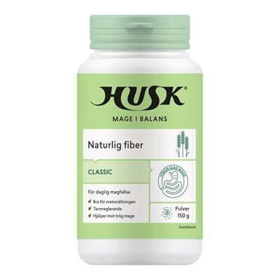 Husk är ett kosttillskott baserat på psylliumfiber, vilket främjar normal matsmältning och kan vara till hjälp vid både trög och lös mage.