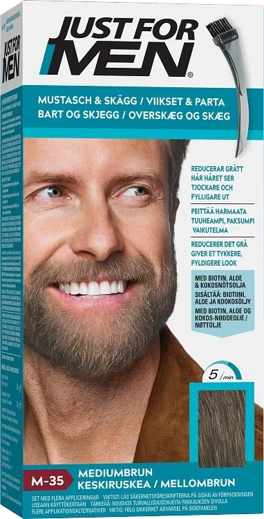 | Mörkbrunt skägg | Just For Men Dark Brown | Eliminerar grått utan att bli för mörkt. |