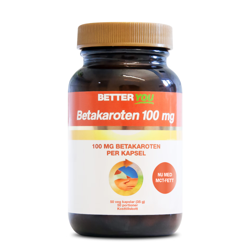 Betakaroten är ett naturligt färgämne och en kraftfull antioxidant som finns i många frukter och grönsaker. Det är ett förstadium till vitamin A, vilket är viktigt för synen, immunförsvaret och huden. Betakaroten har blivit populärt som kosttillskott, särskilt för att främja en naturlig solbränna och skydda huden mot solens skadliga strålar.