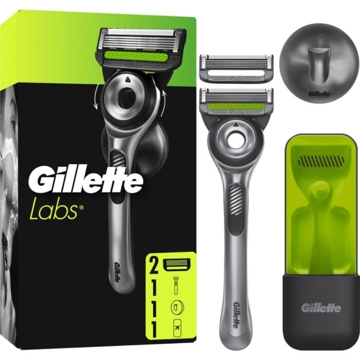 Labs Rakhyvel med Exfoliating Bar, 2 rakblad, magnetiskt ställ & resefodral