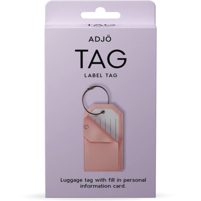 ADJÖ TAG Pink Luggage Tag är en elegant och funktionell bagagetagg i rosa färg med transparent fönster för dina kontaktuppgifter. Den hjälper dig enkelt markera och identifiera din väska under resan.