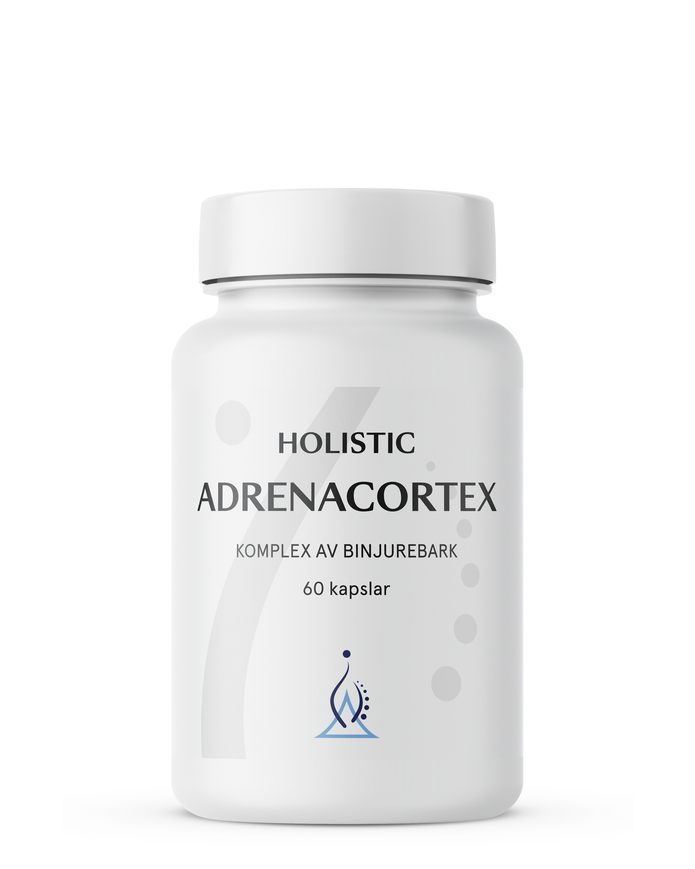 Holistic Adrenacortex innehåller binjurekomplex av hel binjurebark från nötkreatur från Europa, och nukleotider från jäst. Näringsämnena har bevarats tack vare frystorkning och försiktig bearbetning vid låg temperatur. Djuren föds upp naturligt och utan antibiotika eller tillväxthormoner i fodret. Binjurebarken tas tillvara på EU godkända slakterier.