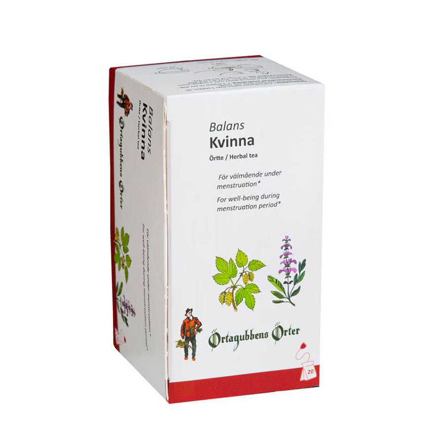 Citronmelissblad (Melissa officinalis) stödjer avslappning och mental hälsa, medan rölleka (Achillea millefolium) traditionellt använts för att lindra menstruationsbesvär. Fänkålsfrukt (Foeniculum vulgare) bidrar till matsmältningen och kan hjälpa vid uppblåsthet. Humlekottar (Humulus lupulus) är kända för sina lugnande egenskaper, och salviablad (Salvia officinalis) används traditionellt för att stödja hormonell balans.