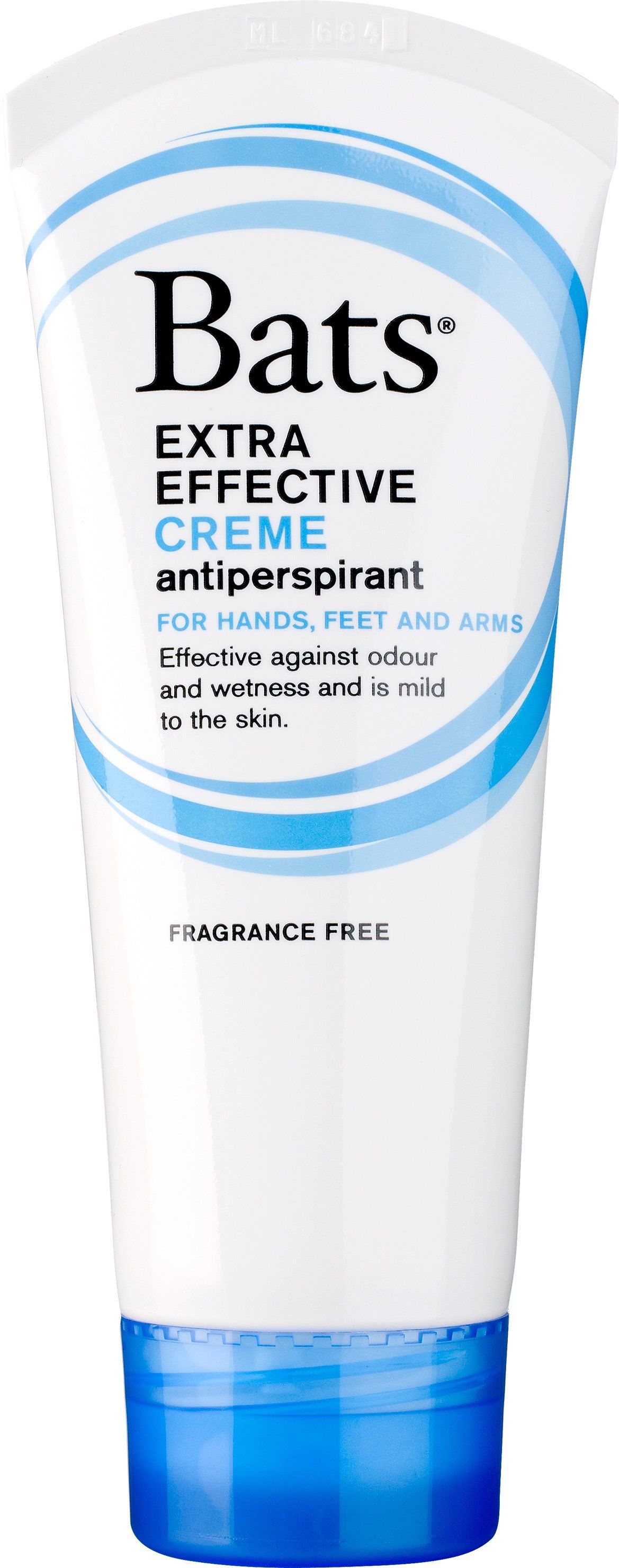 Bats Creme antiperspirant är en deodorant i krämform för dig som effektivt vill motverka arm-, hand- och fotsvett. Bats är extra effektiv mot svett tack vare den höga halten av aluminiumklorhydrat som är ett porstängande, antibakteriellt ämne som både hämmar utsöndringen av svett och motverkar dålig lukt.