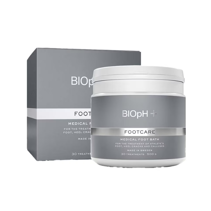 BIOpH Footcare är en medicinteknisk produkt för effektiv behandling av fotsvamp, förhårdnader, hälsprickor och torra fötter.