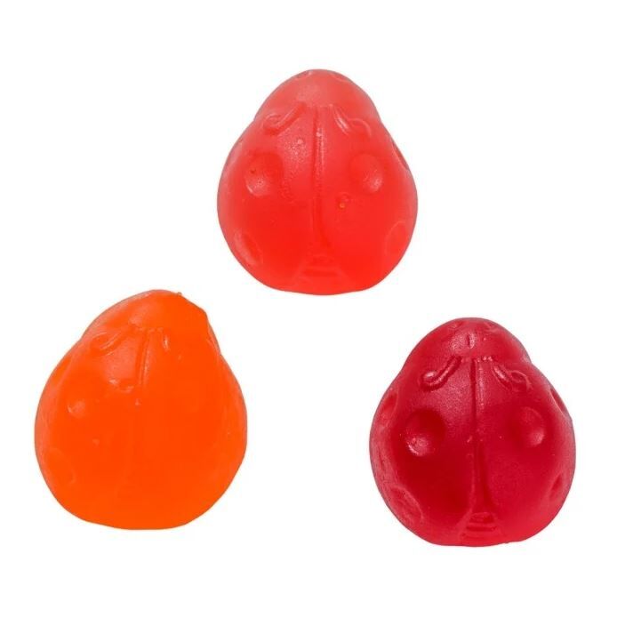 Tuggvitaminerna är i form av nyckelpigor i tre smaker: hallon, blåbär och apelsin.