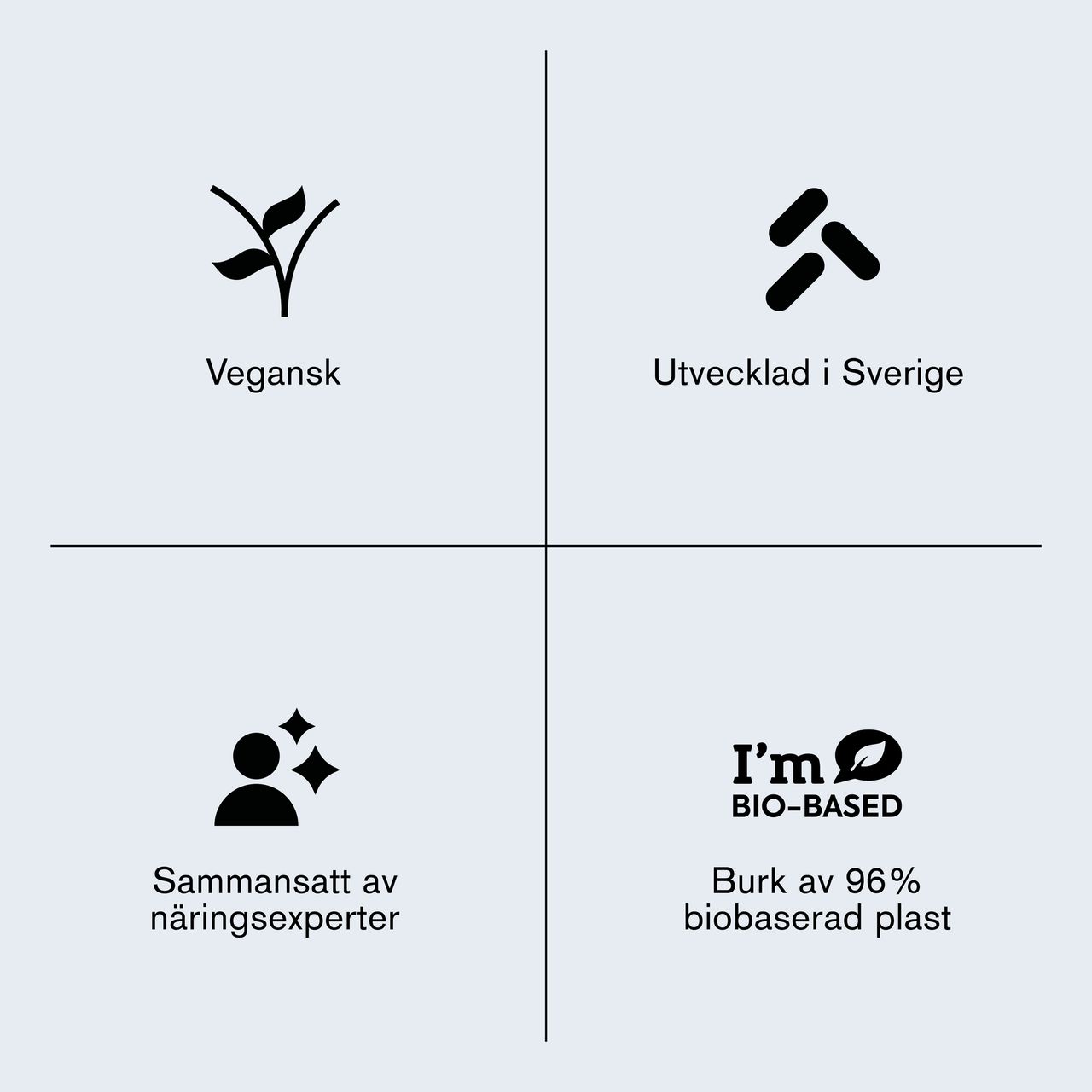 Produkten är 100% veganvänlig och innehåller inga onödiga tillsatser. Holistics burkar är gjorda av 96 procent biobaserad plast.