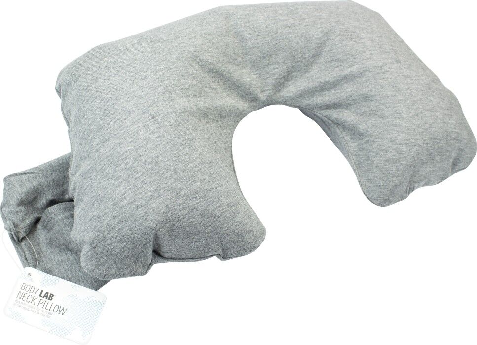 Bodylab Neck Pillow är en uppblåsbar nackkudde som ger stöd åt huvudet och nacken när du sitter och sover på flygresan.
