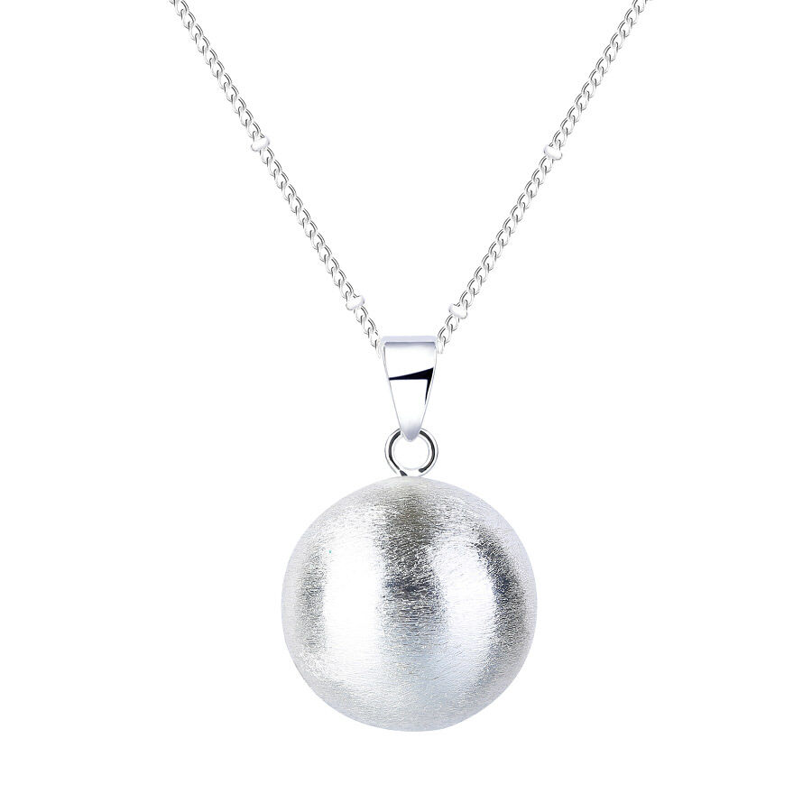 Skimrande silverfärgad Bola med långt matchade halsband i silverfärg.