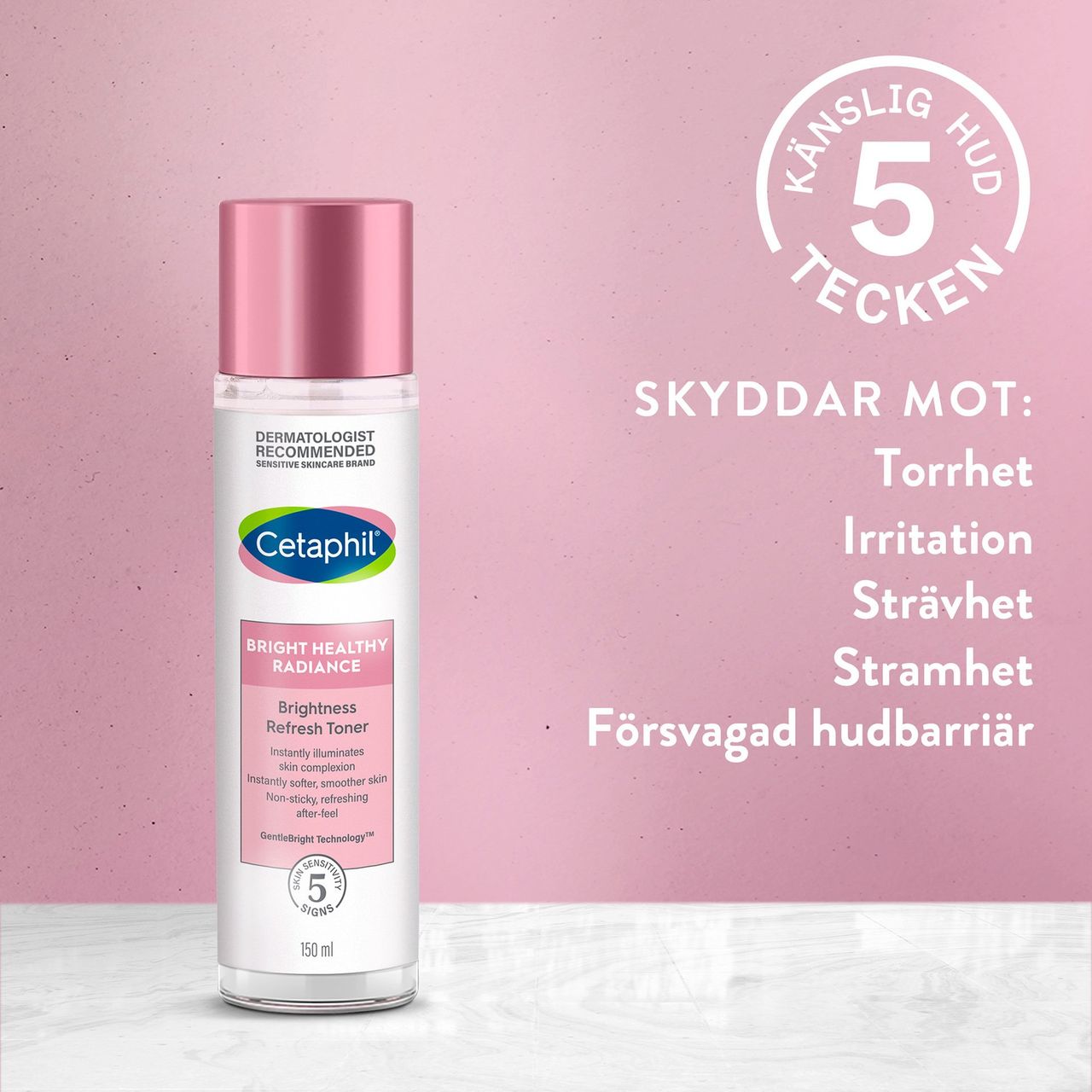 Cetaphil Brightness Refresh Toner är ett ansiktsvatten utvecklat för att bidra till en jämnare hudton och ge huden en naturlig lyster. Tonern är framtagen för daglig användning och passar även känslig hud.