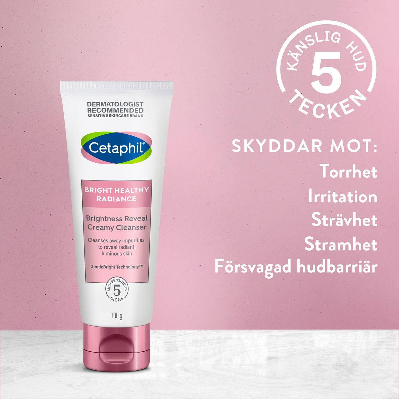 Cetaphil Brightness Reveal Creamy Cleanser verkar för att minska pigmentfläckar och bidra till en jämnare hudton med naturlig lyster. Ansiktstvätten innehåller ett naturligt växtextrakt från Sea Daffodil (strandlilja), som används i hudvård för att minska intensiteten och färgen på pigmentfläckar. I kombination med niacinamid verkar rengöringen för att jämna ut hudtonen och ge huden ett klarare och mer enhetligt utseende.