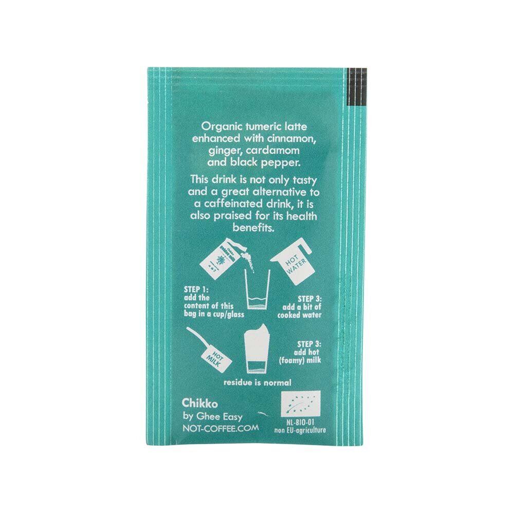 Nu finns Chikko Not Coffees Golden Milk som flerpack i smarta enportionspåsar, perfekta att ta med sig till jobbet eller på resan. Denna förpackning innehåller 20 st enportionspåsar à 2 g som ger 25 koppar Chikko Golden Milk.