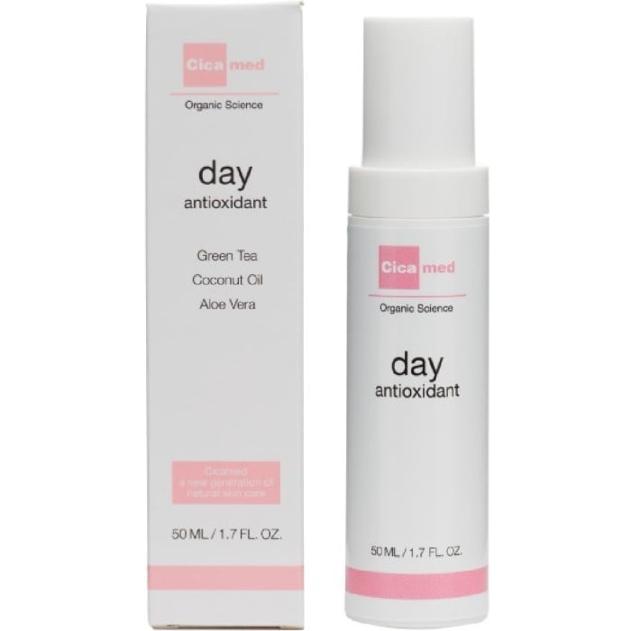 Cicamed Day Antioxidant är en antiage-dagkräm som återfuktar huden och ger en fin, naturlig lyster. Cicamed Day innehåller skyddande antioxidanter, naturliga fuktgivare samt ekologiskt sheasmör, jojobaolja och kokosolja.
