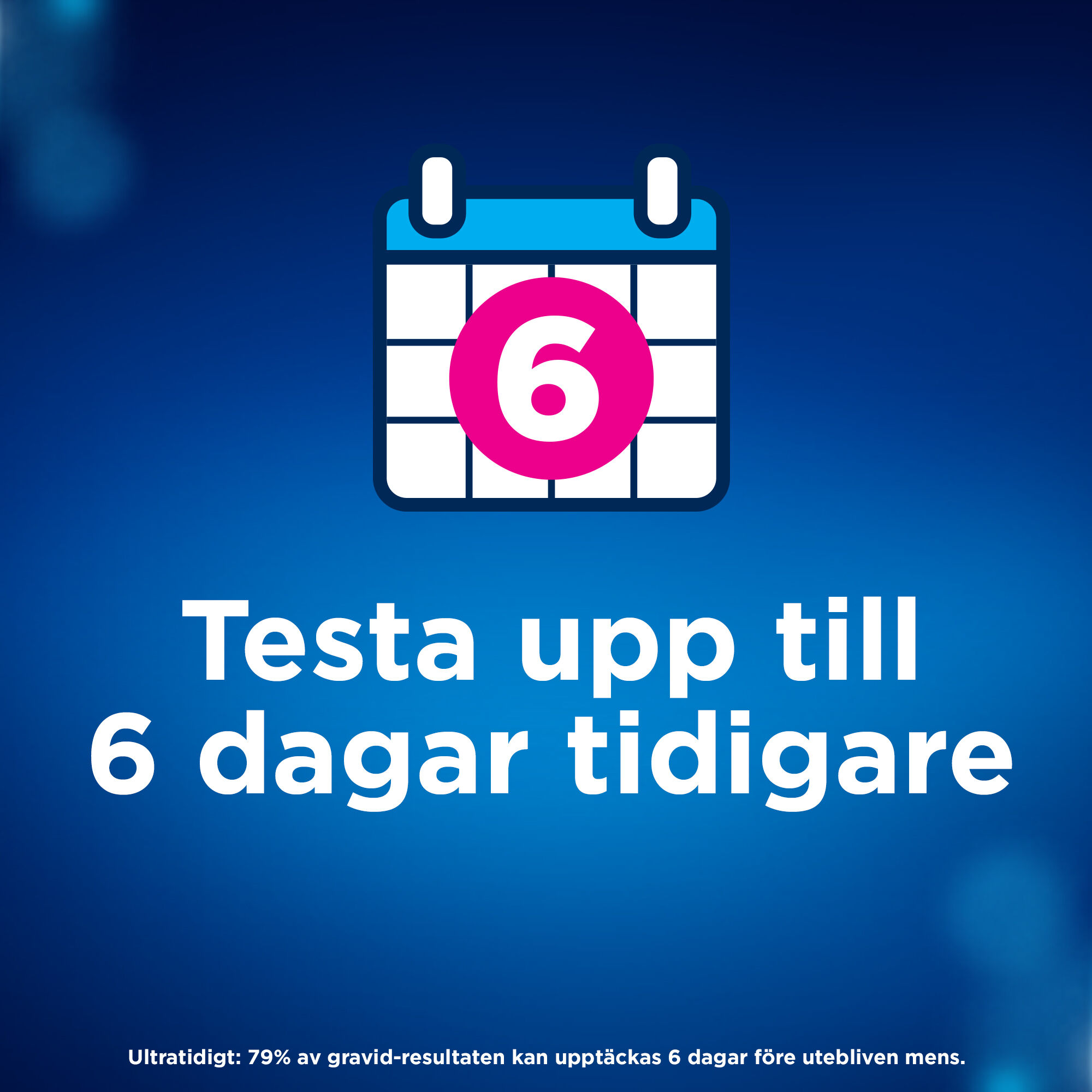 (1) Ultratidigt: 79 procent av graviditetsresultaten kan upptäckas 6 dagar före din uteblivna mens (5 dagar före din förväntade mens).