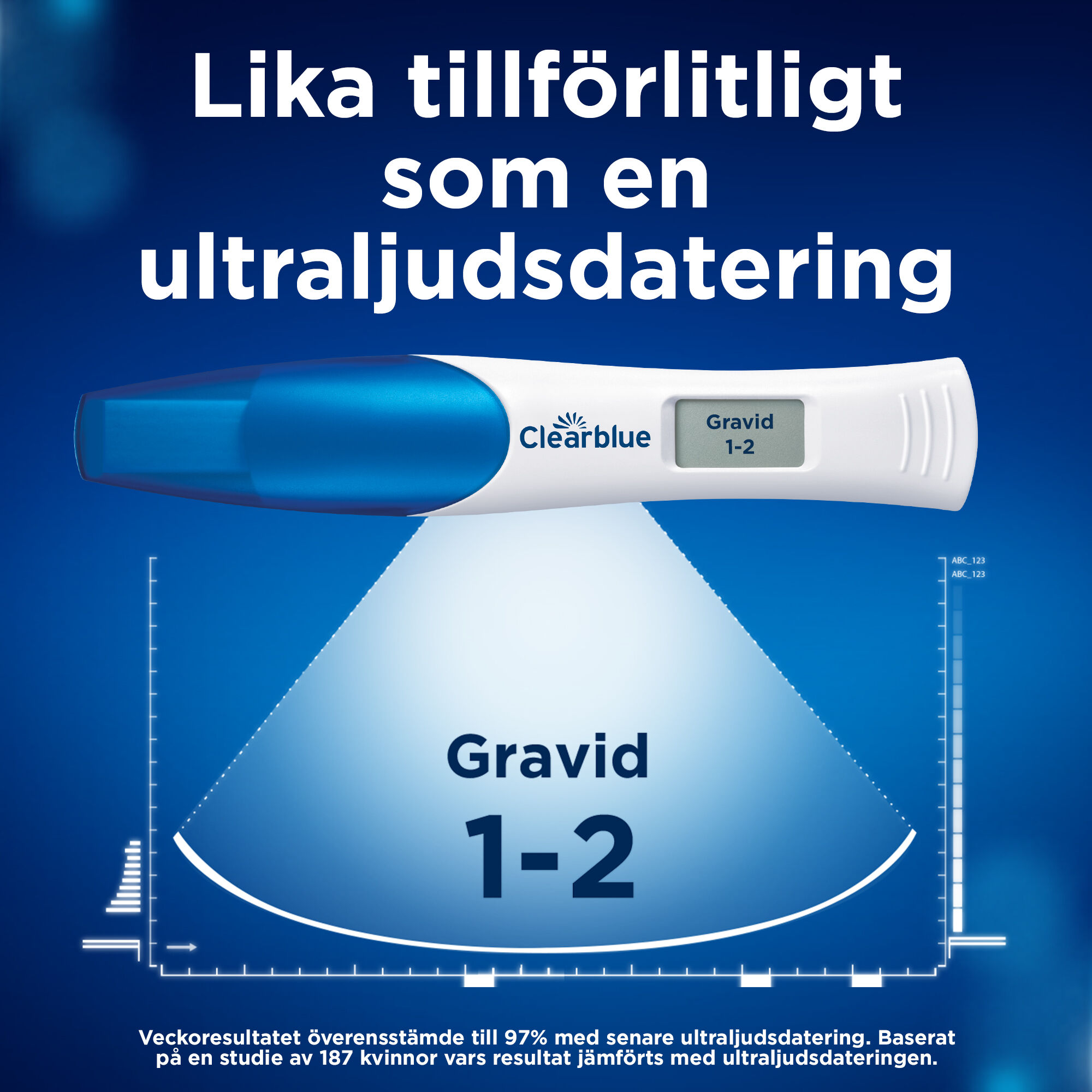 Njut av den unika fördelen av att få reda på hur långt gången du är, hemma: Clearblue Graviditetstest med Veckoindikator ger dig inte bara ett tydligt ”Gravid” eller ”Inte gravid” resultat i text på en digital skärm, utan anger även antalet veckor sedan du blev gravid om resultatet är ”Gravid”: 1–2, 2–3 eller fler än 3 (3+). Det är lika tillförlitligt som en ultraljudsdatering av graviditeten.