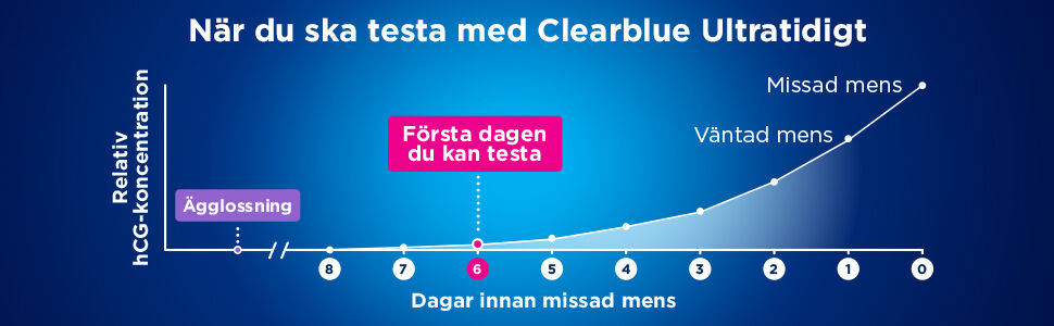 Använd Clearblue Ultra Early Pregnancy Test för resultat upp till 6 dagar före din uteblivna mens (5 dagar före din förväntade mens) (1).