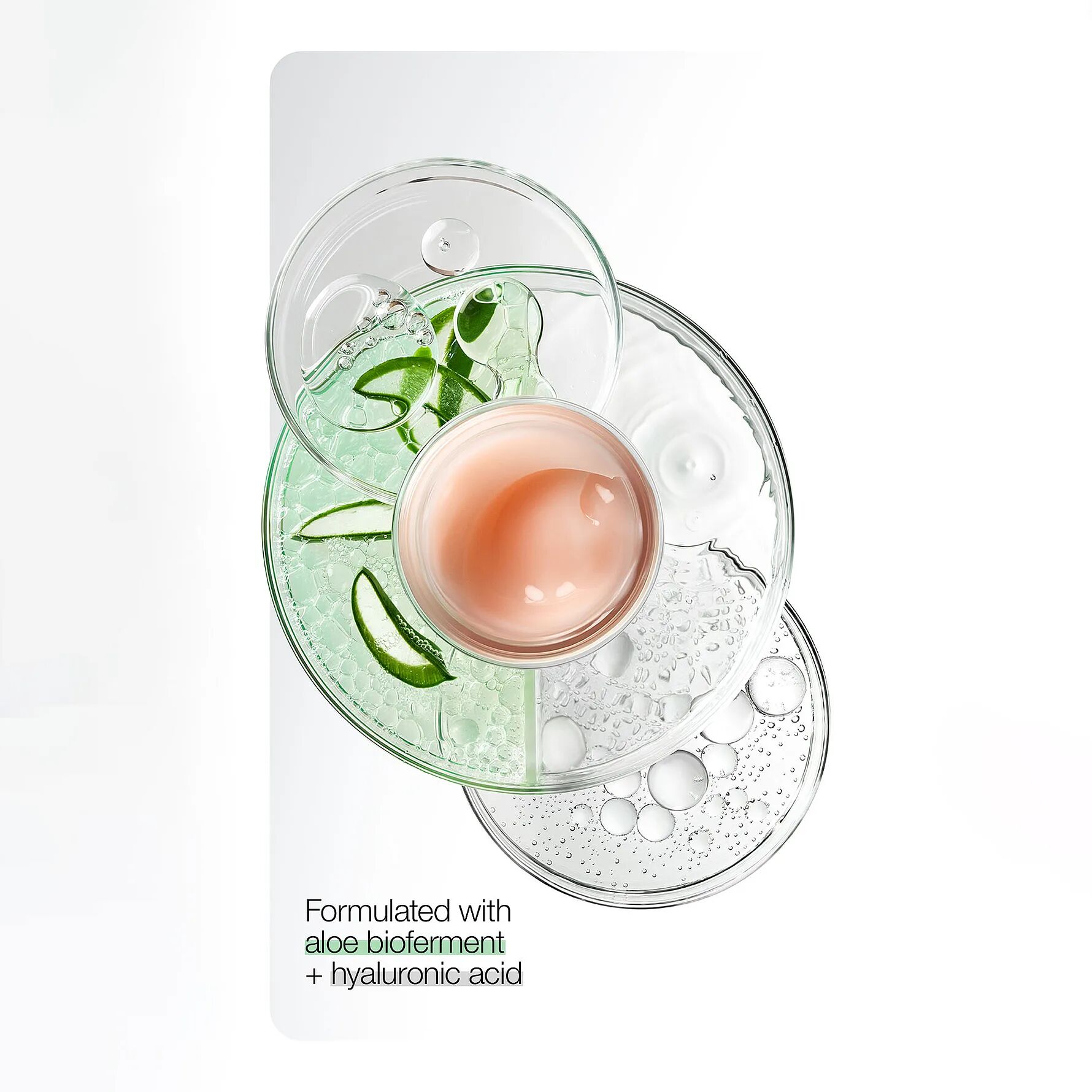 Formulan innehåller aloe bio-ferment och hyaluronsyra som tillsammans bidrar till intensiv återfuktning djupt i hudens ytskikt. Den fräscha gelkrämstexturen absorberas snabbt utan att kännas fet och ger en omedelbar fuktboost samtidigt som huden känns behagligt återfuktad i upp till 100 timmar – även efter rengöring. Krämen fungerar utmärkt som daglig fuktkräm och skapar en slät, återfuktad bas inför makeup.