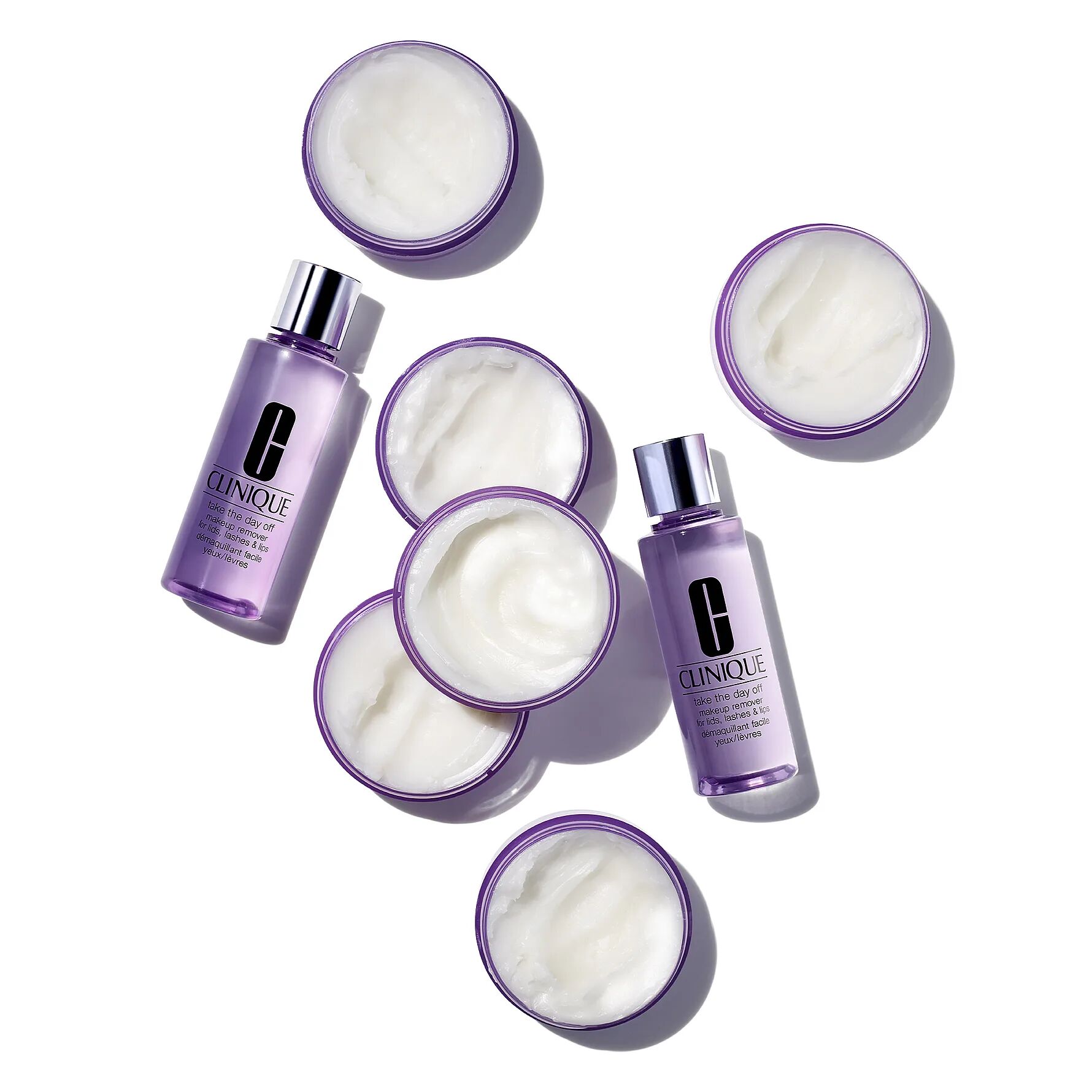 Clinique Take The Day Off Cleansing Balm är en mild men effektiv rengöringsbalm som snabbt löser upp makeup, solskydd, smuts och överskottstalg. Den kompakta balmformulan smälter vid applicering och förvandlas till en silkeslen olja som rengör huden på djupet utan att kännas fet eller uttorkande.