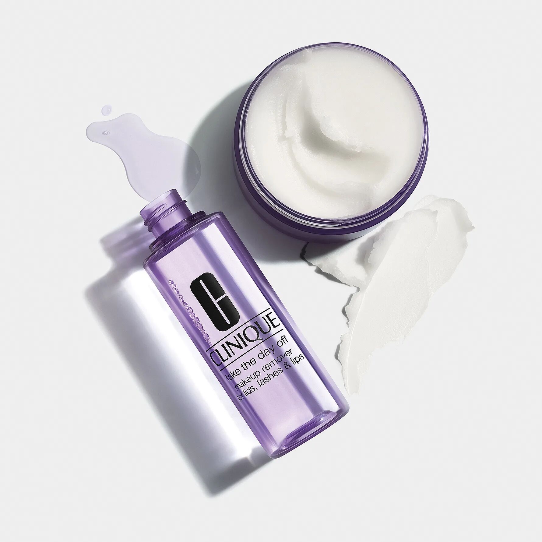 Clinique Take The Day Off Makeup Remover For Lids, Lashes & Lips är en snabbverkande och skonsam makeupremover utvecklad för att effektivt avlägsna även hårt sittande och vattenfast makeup. Den är särskilt anpassad för det känsliga området kring ögon och läppar och löser upp makeup utan att irritera huden eller lämna en fet hinna.
