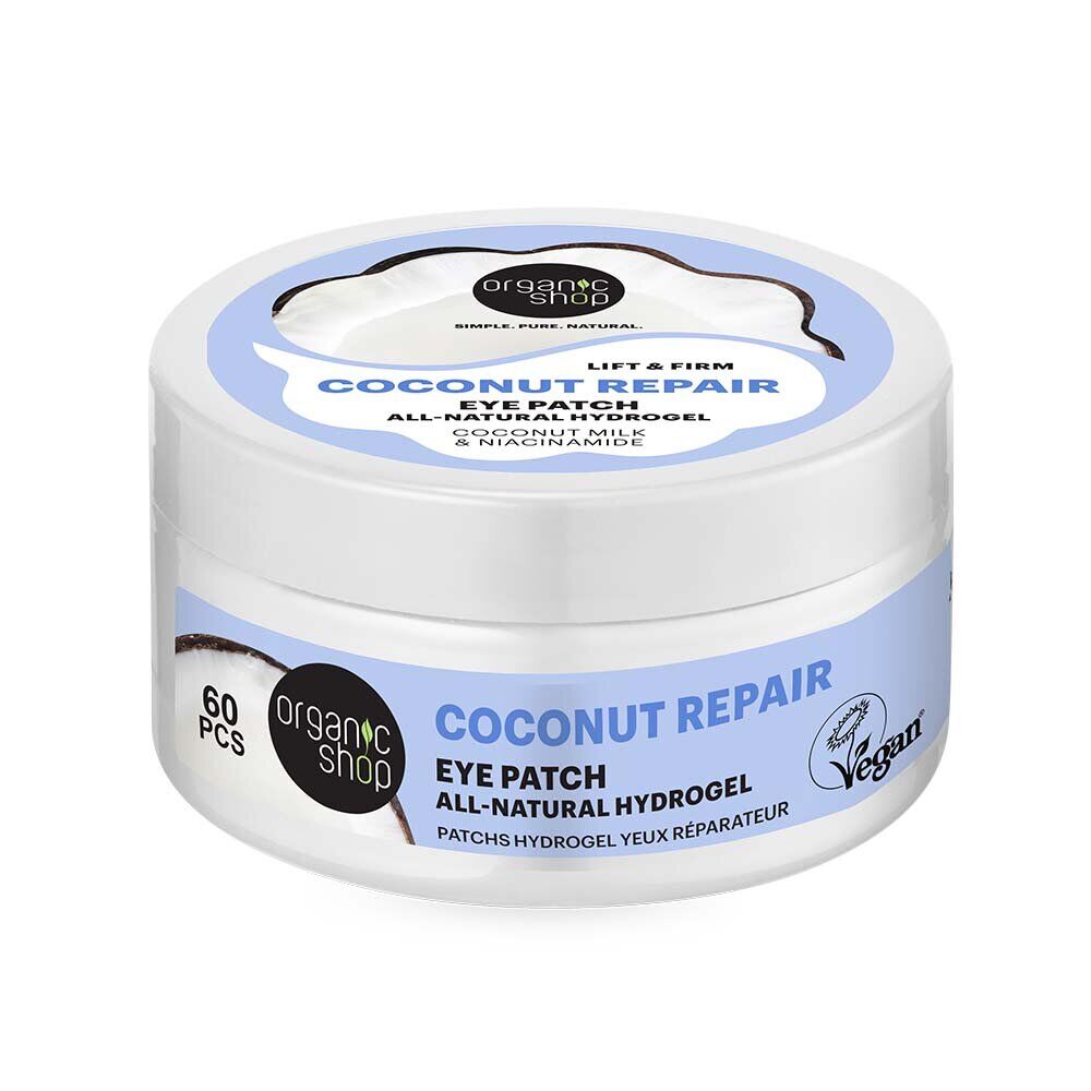Coconut Repair Lift & Firm Natural Hydrogel Eye Patch 60 st från Organic Shop är återfuktande och uppstramande ögonmasker som hjälper till att minska svullnad och ge ett piggare, mer utvilat intryck runt ögonen. De mjuka hydrogel-patcheserna är särskilt framtagna för den känsliga huden kring ögonen och verkar effektivt på bara 15 minuter. Med kokosmjölk och niacinamid återfuktas huden på djupet samtidigt som hudens elasticitet främjas och hudstrukturen förbättras. Resultatet är en slätare, mjukare hud med fräschare och mer ungdomligt utseende.