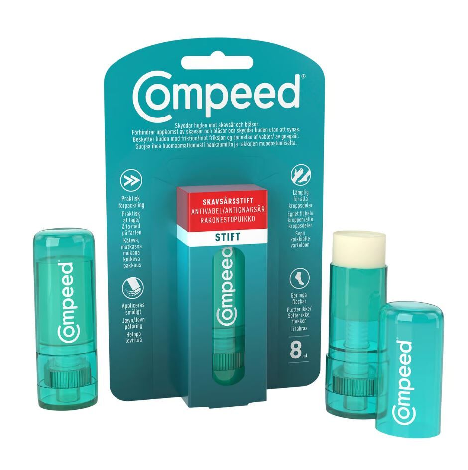 Få saker kan svida och irritera så mycket som ett skavsår. Compeed Anti Skavsårsstift används direkt på huden där du vill förebygga friktion. Stiftet reducerar friktionen omedelbart och förebygger uppkomsten av skavsår. Perfekt att ha nära till hands om du ska gå in ett par nya skor eller har skavsår någon annanstans på kroppen.