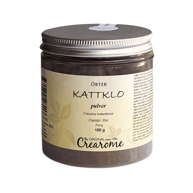 Ingredienser: Kattklopulver Uncaria tormentosa.