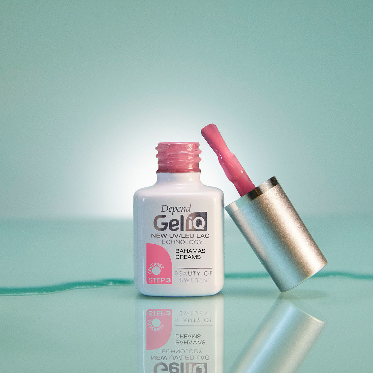 Ny gelformula med högt iQ. Snabb och enkel applicering som ger ett superglansigt resultat med plumpig-effekt som skiljer sig från ett vanligt nagellack. NO PREP innebär att du inte behöver förbereda din naturliga nagel med filning eller behandla med stark primer som kan försämrar din nagelkvalitet, vilket ska undvikas. Gel iQ behöver bara lätt rengöring med en mild Pre-Cleanser innan du utför din lackbehandling. UV/LED-lampan är speciellt utvecklad med en härdningstid på 30 sekunder i varje applikationssteg. Symbiosen mellan lampa och lack ger en självutjämning där eventuella ränder försvinner under härdningen, även om du inte lackat helt jämnt.