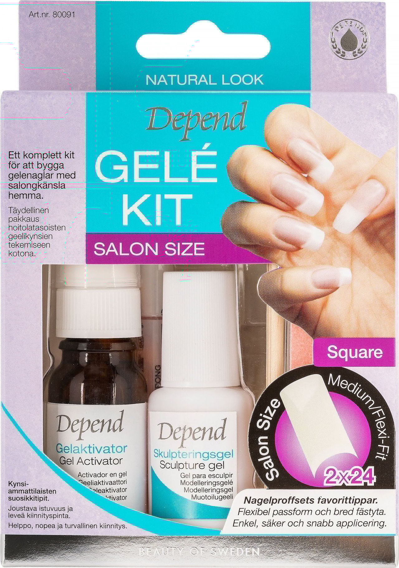 Depend Gelékit Salon Size är ett komplett kit för att bygga gelénaglar med salongkänsla hemma.