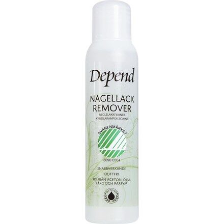 Depend Miljöanpassad Remover är en Svanenmärkt nagellacksremover utan aceton, parfym eller olja. Låter dig enkelt och skonsamt ta bort nagelacksrester utan att nageln riskerar att bli porös eller missfärgad.