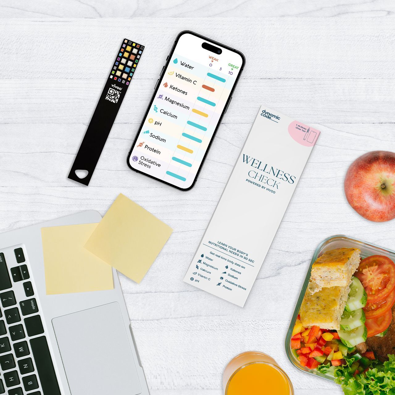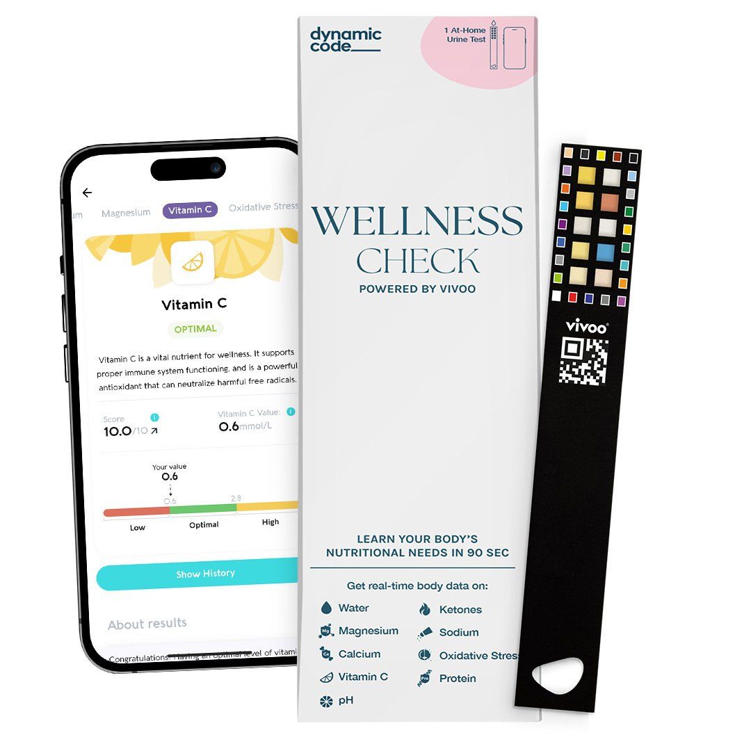 Dynamic Code Wellness Check är ett enkelt hemmatest som ger dig insikt i din hälsa. Med ett urinprov kan du enkelt mäta viktiga markörer som vitamin- och mineralnivåer, stress och vätskebalans. Resultatet kopplas direkt till en app, där du får ett övergripande wellness score samt personliga tips för att optimera ditt välmående.