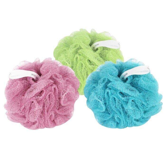 Exfoliating EcoPouf är tillverkad av ett nätmaterial som är gjort av 100% återvunnen plast.