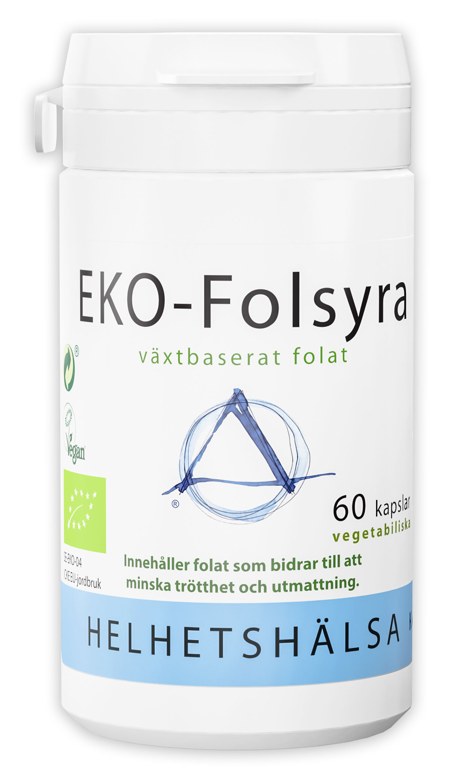 Helhetshälsa EKO-Folsyra har naturligt ursprung och innehåller aktiv folsyra, metylfolat i färdig form.