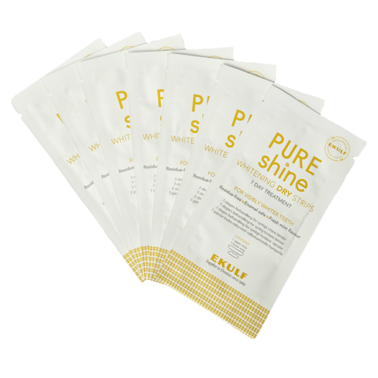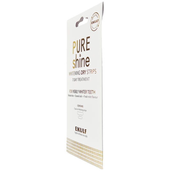 Med en uppfriskande smak av mint ger Ekulf PURE Shine inte bara ett vitare leende utan också en ren och fräsch känsla i munnen. En förpackning innehåller 7 par remsor, vilket räcker till en komplett behandling.
