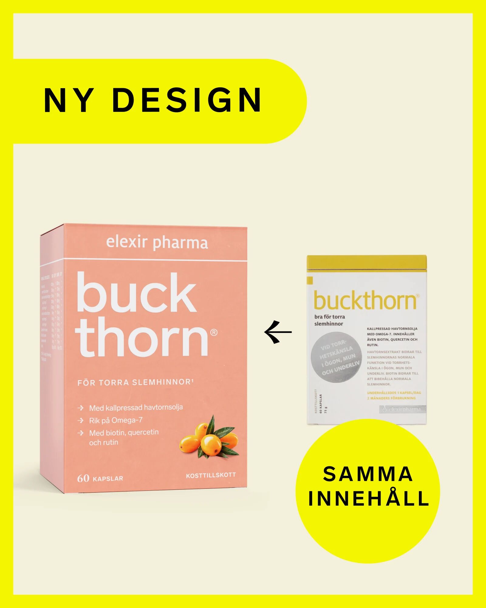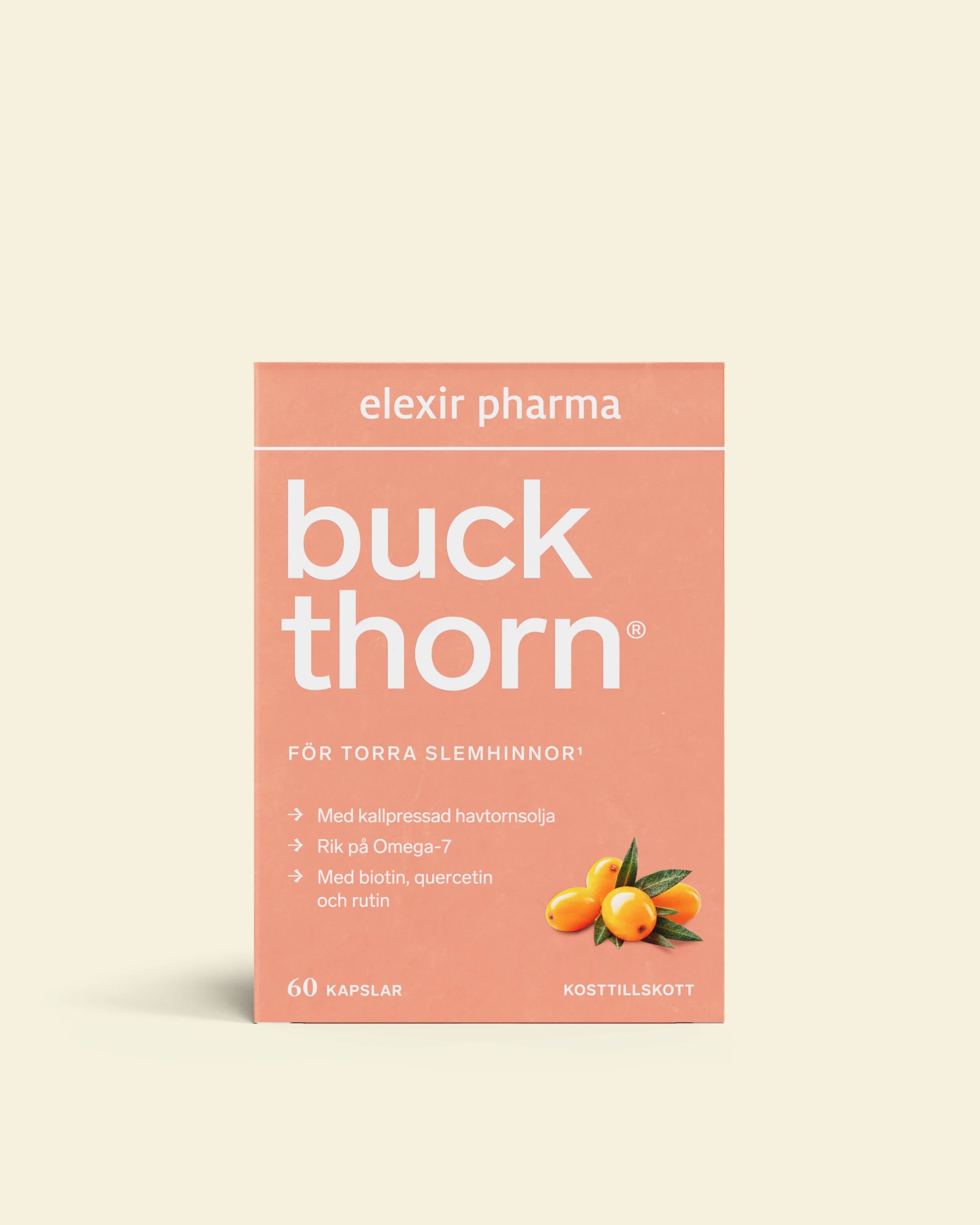 Elexir Buckthorn är ett högkvalitativt kosttillskott från Elexir Pharma som är särskilt utvecklat för att stödja och bibehålla normala slemhinnor i hela kroppen. Produkten baseras på ett högkoncentrerat och ekologiskt havtornsextrakt som är naturligt rikt på fettsyran Omega-7. Slemhinnorna spelar en avgörande roll för kroppens välmående och fungerar som ett skyddande lager i bland annat ögon, munhåla, urinvägar och underliv. Med tiden eller vid hormonella förändringar kan dessa slemhinnor upplevas som torra eller känsliga, och det är här Omega-3 och fettsyror från havtorn kan göra stor skillnad i din dagliga rutin.