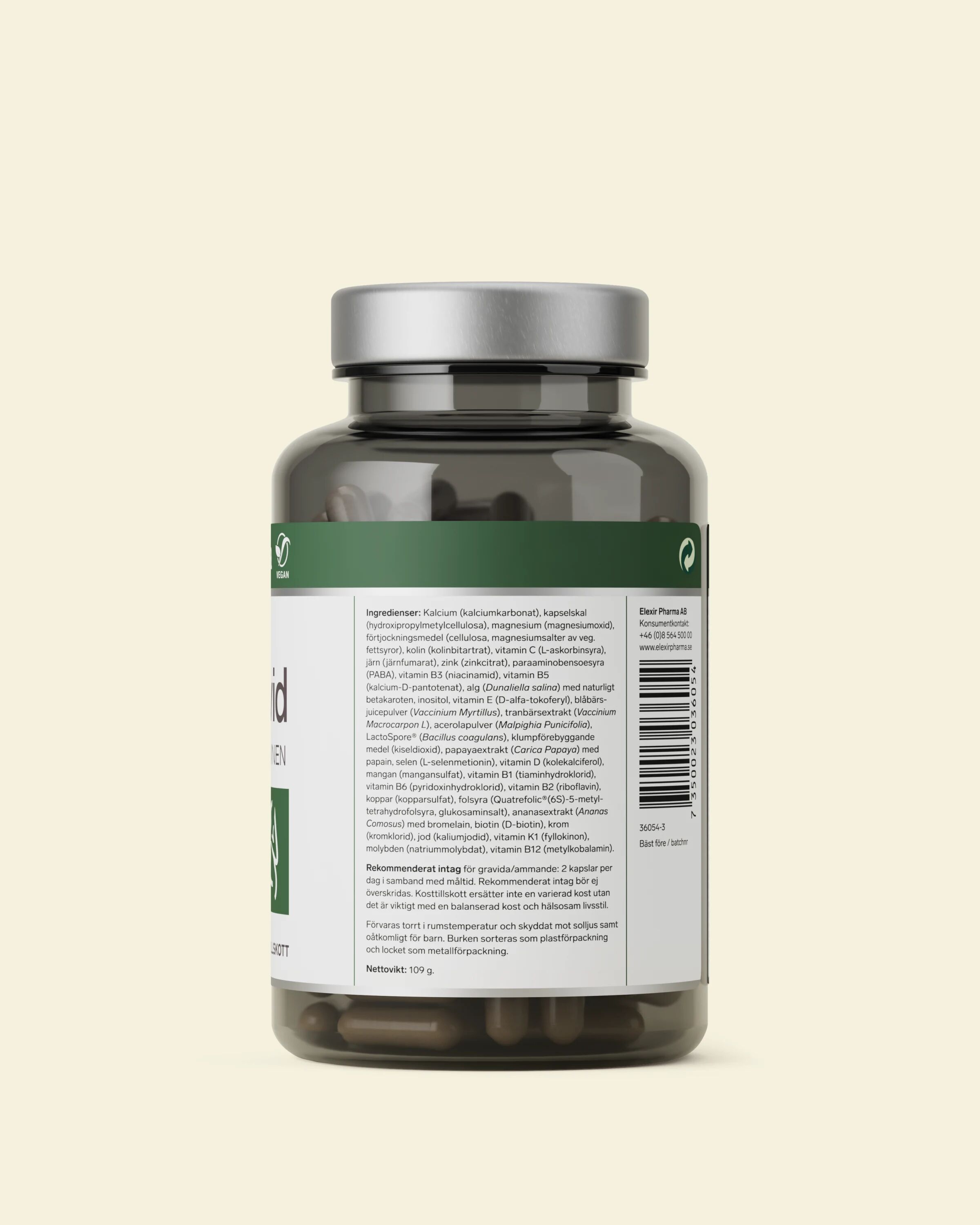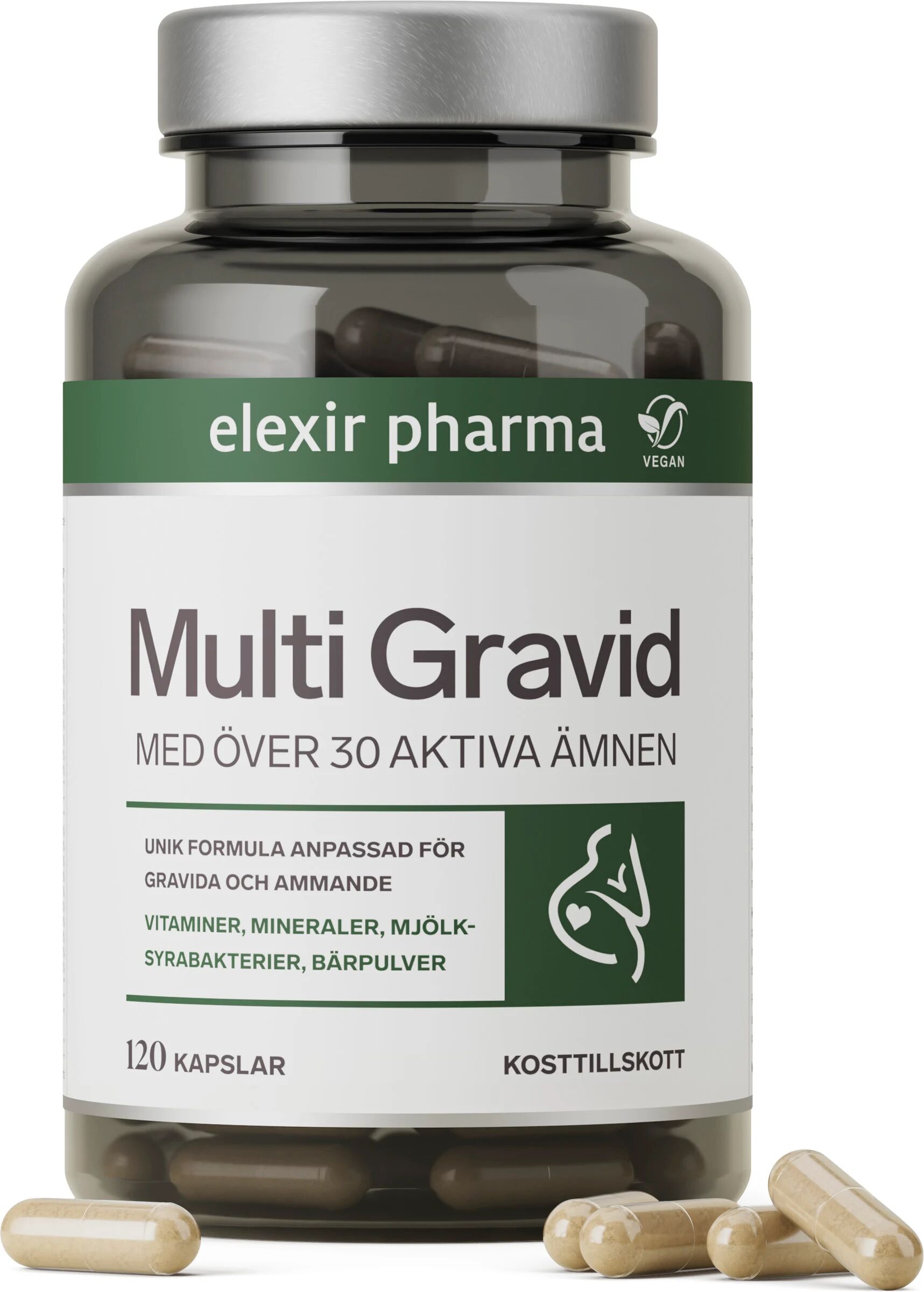 Elexir Multivitamin Gravid är ett svenskutvecklat kosttillskott framtaget för att möta de unika näringsbehov som uppstår under både graviditet och amning. Med över 20 års erfarenhet skapar Elexir Pharma produkter som är trygga för livets alla skeenden, och denna multivitamin produceras med högsta omsorg, oftast i Norge. Genom att kombinera viktiga mineraler och vitaminer säkerställer du att kroppen får de byggstenar som efterfrågas för en sund utveckling och daglig hälsa.