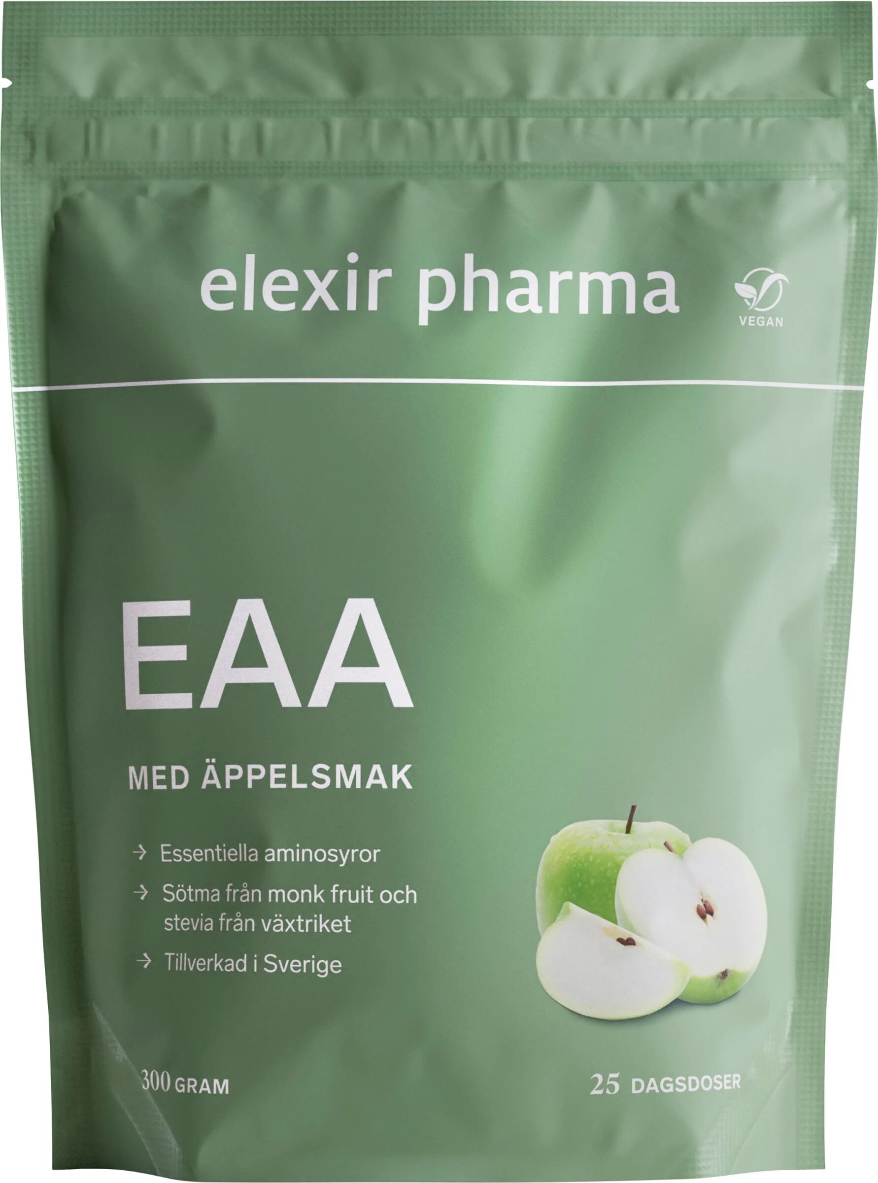 Elexir Pharma EAA Äpple är ett högkvalitativt EAA-tillskott utvecklat för att stödja muskeltillväxt, återhämtning och prestation. Produkten innehåller alla nio essentiella aminosyror, vilka kroppen inte kan producera själv och som därför behöver tillföras via kost eller kosttillskott.