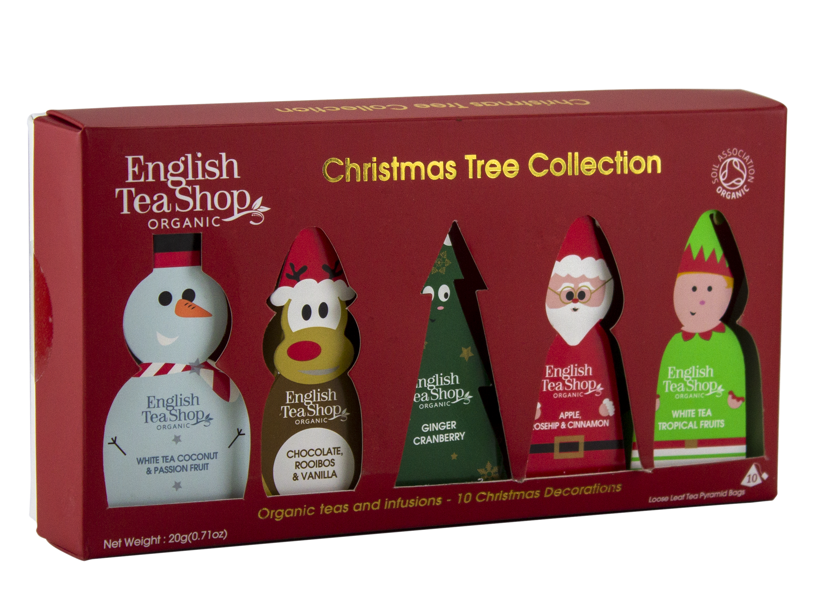 Innehåller: Vitt te tropiska frukter; Vitt te kokos & passionsfrukt; Äpple, Nypon & Kanel; Choklad, Rooibos & Vanilj; Ingefära tranbär.