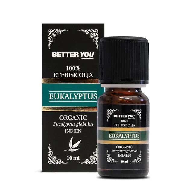 Innehåll: Ekologisk Eukalyptusolja (Eucalyptus globulus). Framställd genom destillering av blad.