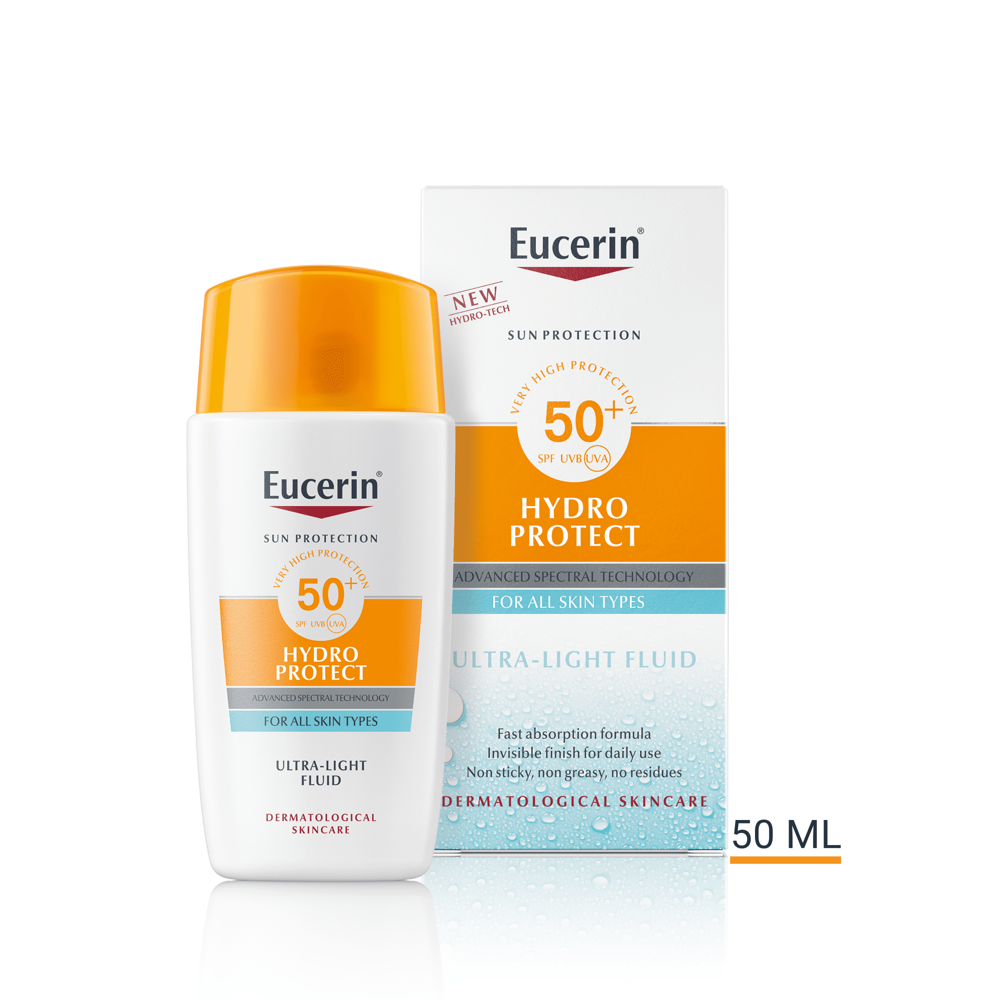 Återfuktande solskyddscreme med SPF 50+ och ultralätt konsistens för ansiktet som innehåller Hydro-Tech-Komplex - en kombination av Hyaluronsyra och Natural Moisturizing Factors - för omedelbar återfuktning och en fräsch känsla på huden. Produkten absorberas snabbt utan kladd, lämnar inga rester på huden och får en osynlig finish.