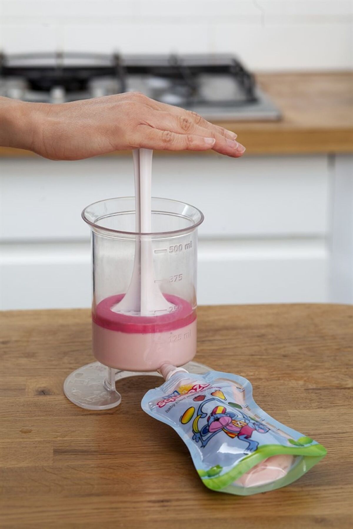 FillnSqueeze är det perfekta alternativet för dig som vill ge ditt barn hemlagad mat men som samtidigt söker den portabilitet och smidighet som du får när du köper barnmat på burk. Den multifunktionella matstationen kan användas för att blanda eller mosa mat och sedan fylla upp till 4 påsar på under 20 sekunder.