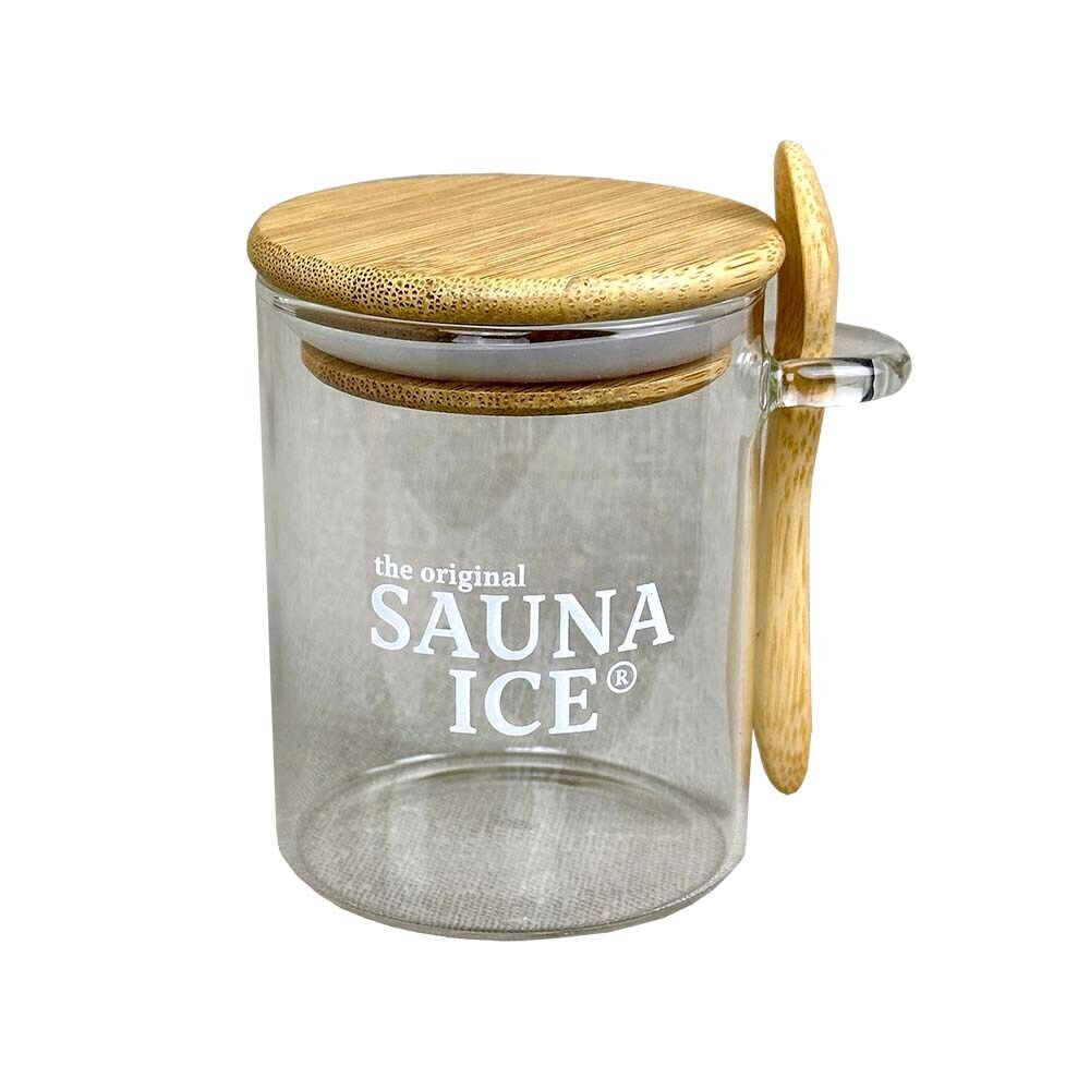 Förvara dina Sauna Ice mentolkristaller på ett stilrent & praktiskt sätt med denna lufttäta glasburk. Med tillhörande träsked får du enkel dosering varje gång. Burken rymmer cirka 100 gram mentolkristaller, motsvarande 5 påsar, & håller dem fräscha längre. Perfekt för bastuhyllan – både funktionell & dekorativ.