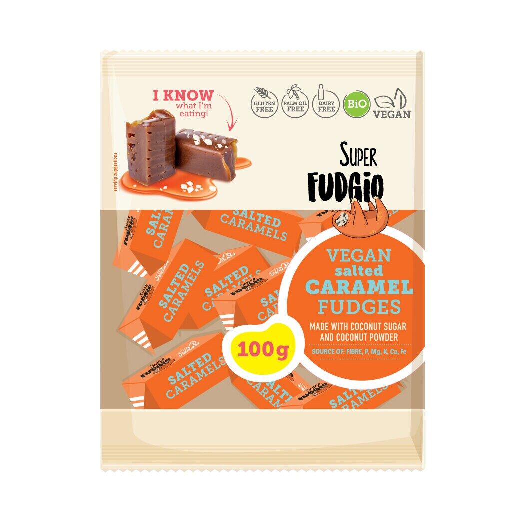 Godissugen? Njut av helgen och unna dig både gott och nyttigt godis. Köp Super Fudgio ekologiska fudgekola med kokossocker och smak av salt karamell.