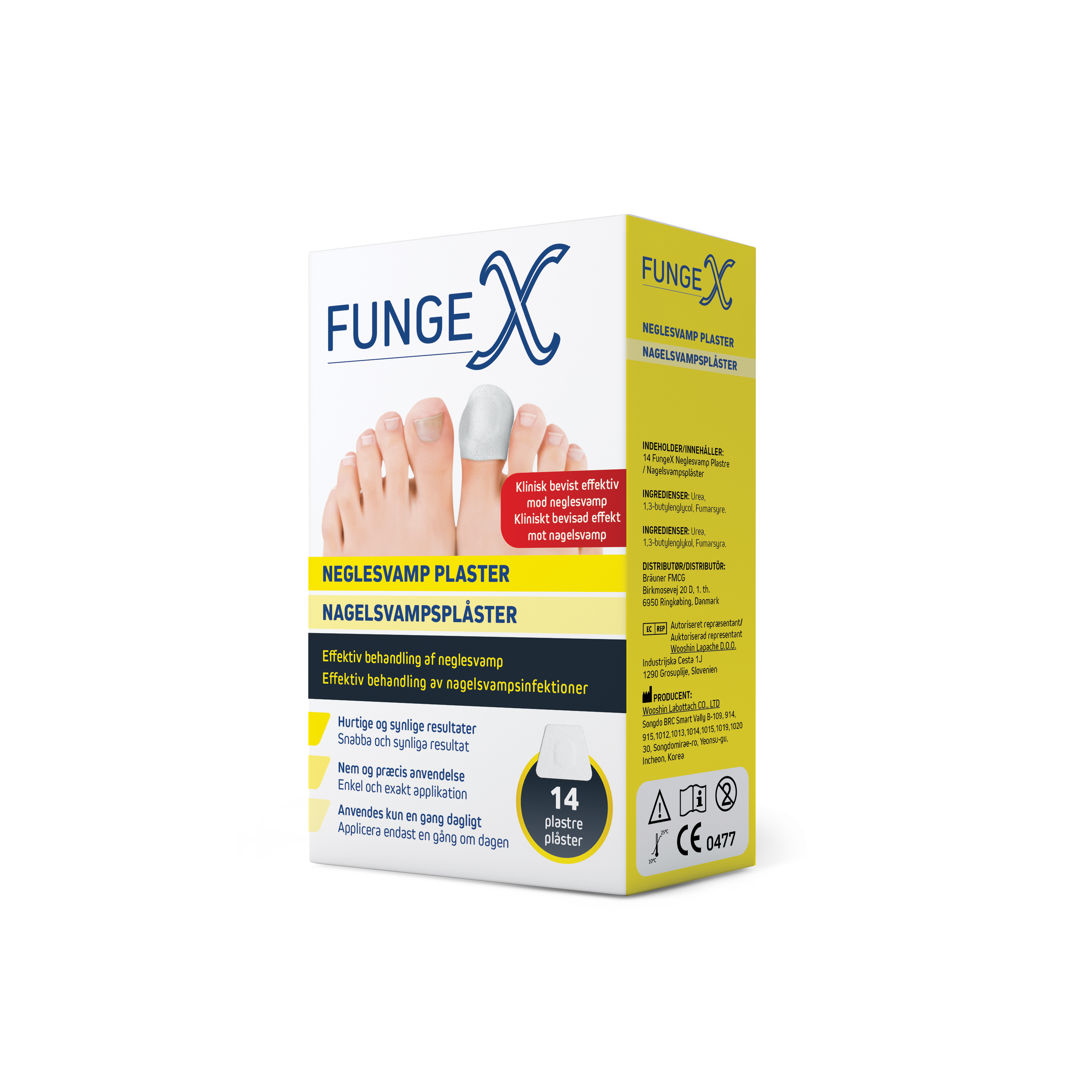 FungeX nagelsvampsplåster är en innovativ medicinteknisk produkt utvecklad för att ge en kraftfull och koncentrerad behandling mot nagelsvamp och missfärgade naglar. Genom att applicera plåstret direkt på den drabbade nageln frigörs de aktiva ingredienserna kontinuerligt under 8 timmar, vilket gör produkten idealisk för användning under natten. Den nagelformade designen ger en exakt punktbehandling som samtidigt återfuktar nageln, minskar ojämnheter och ger snabbare synliga resultat på nagelns utseende.