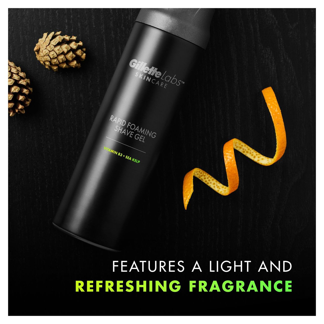 Gillette Labs Rapid Foaming rakgel kyler huden för att hjälpa till att skydda under rakning. Denna rakgel för män är tillverkad utan alkohol eller färgämnen. Använd genom att applicera, raka och skölja. Använd denna rakgel med Gillette Labs-rakhyvlar för att uppleva en snabb, enkel och uppfriskande rakning. Rakgelen har en lätt och uppfriskande doft.