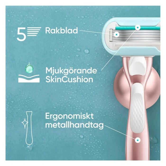 För ett optimalt resultat rekommenderar vi att du förbereder huden med Gillette Venus Satin Care Sensitive rakgel för att minimera friktion. Den medföljande duschhållaren säkerställer att bladen torkar snabbt och håller sig vassa längre, vilket gör den till en naturlig del av din badrumsrutin hos bonmed.