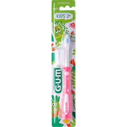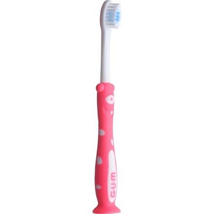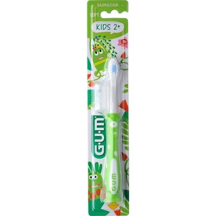 GUM Kids är en tandborste anpassad för barn 2+ år. Försedd med en praktisk sugkopp som gör att tandborsten kan fästas mot kakel, spegel- eller porslinsyta. Med en smart markering på borsthuvudet som gör det enkelt för dig och ditt barn att sätta rätt mängd tandkräm på tandborsten. Inklusive tandborstkydd. Levereras i slumpmässiga färger.