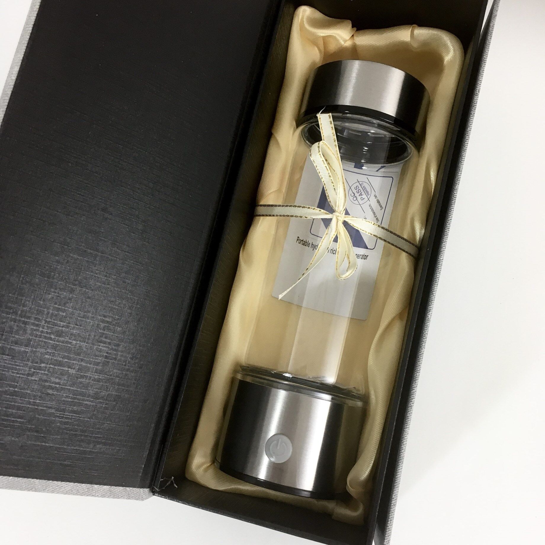 PlanetsOwn H2 Flaska Hydrogen är en smidig vattenflaska som gör det möjligt för dig att skapa ditt eget vätebaddat vatten hemma. Vätevatten är vanligt vatten som är berikat med vätemolekyler, vilket sker genom en enkel elektrolysen i flaskan. Resultatet är ett klart, luktfritt och smakfritt vatten som är helt säkert att dricka för både vuxna och barn. Du fyller bara flaskan med vanligt vatten och kopplar in den med den medföljande USB-kabeln. Efter ungefär 2-3 minuter är vätemolekylerna integrerade i vattnet och det är redo att avnjutas. Den stilrena designen av PlanetsOwn H2 Flaska Hydrogen kombinerar rostfritt stål och glas, och den levereras i en elegant presentförpackning.